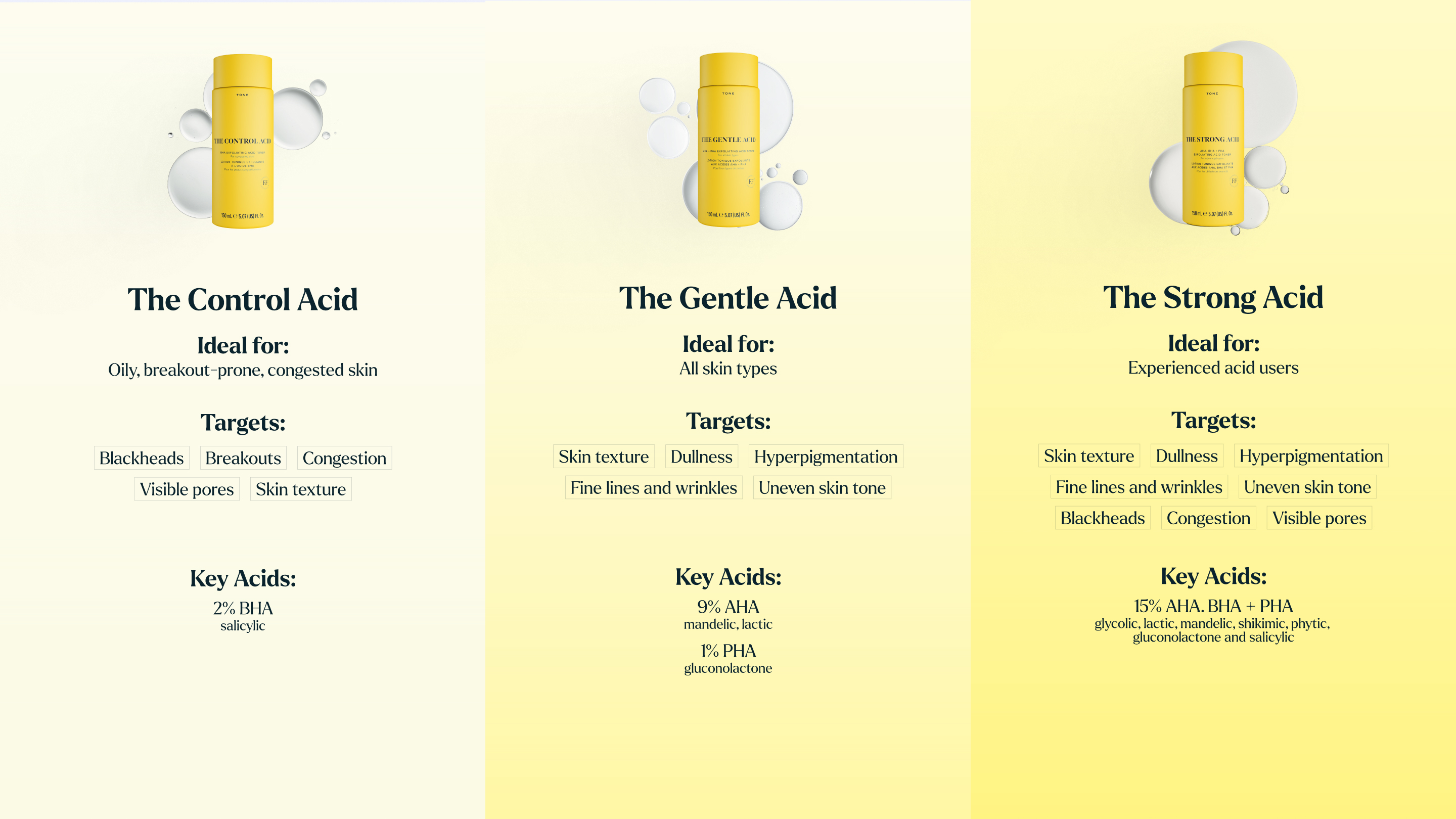 The Control Acid is our BHA Exfoliating Acid Toner, which is suitable for oily, breakout prone, congested skin.